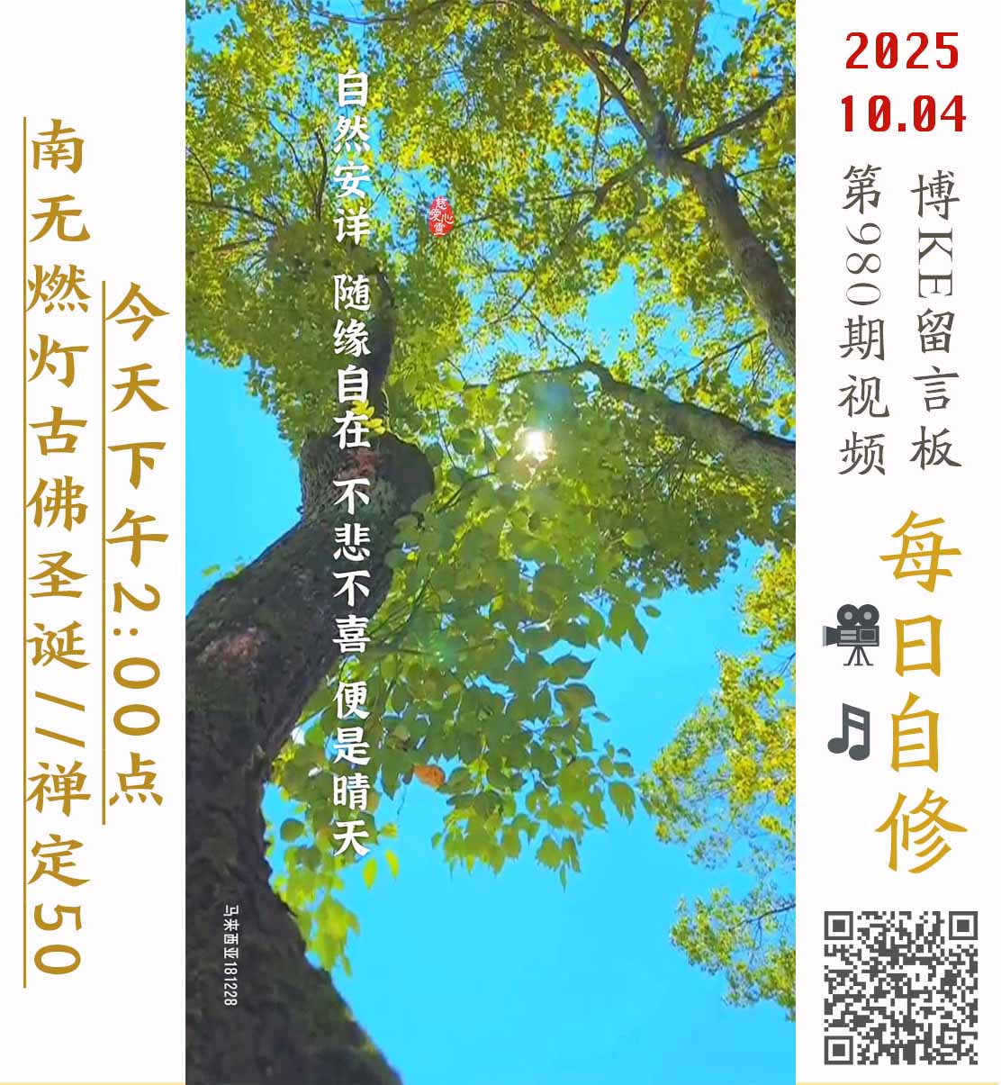 视听【每日自修+留言板】10.4.25 懂因果最好的方法就是不要去做坏事 | 第980期视频| 今14点专题共修